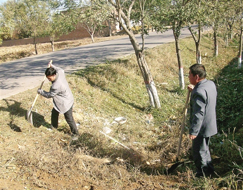 李進禎(左一)生前帶領(lǐng)村民對鄉(xiāng)村環(huán)境綜合整治。 (資料圖片)