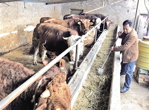 在李進禎幫扶下,建檔立卡的貧困戶馬俊通過養(yǎng)牛,走上脫貧致富之路。(資料圖片)