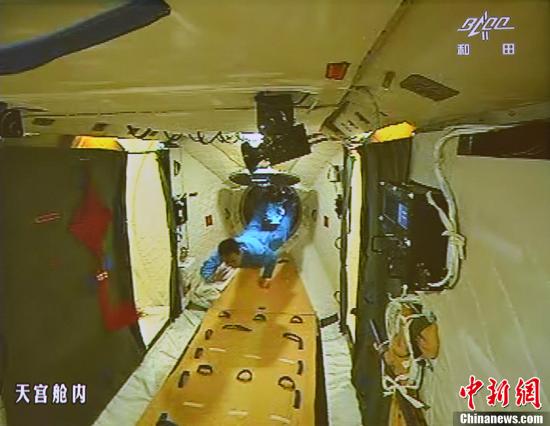 圖為在張曉光的協助下,聶海勝順利開啟并進入天宮一號艙門(資料圖)。中新社發 秦憲安 攝