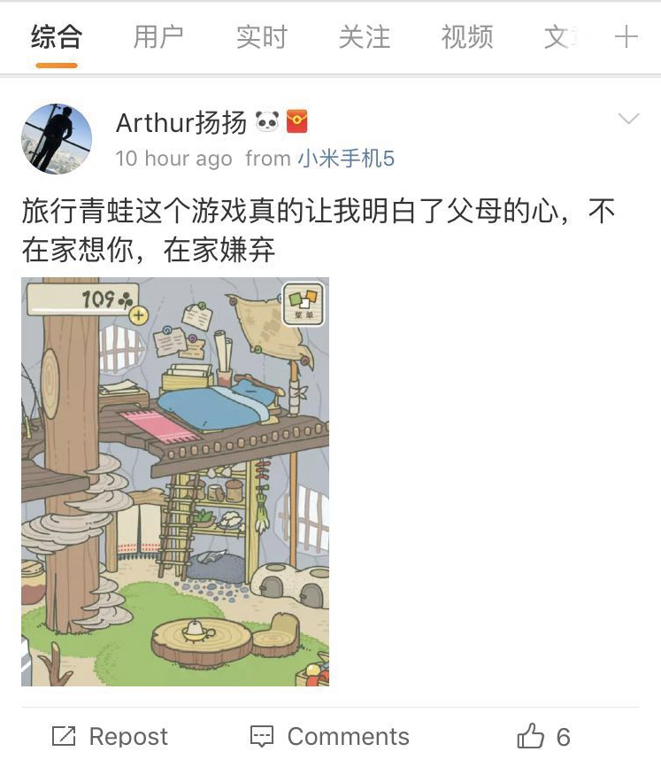 《旅行青蛙》在中國(guó)社交網(wǎng)絡(luò)的流行,也在于那種低欲望、佛系、一個(gè)人生活、又能怡然自樂(lè)的年輕人越來(lái)越多了。2018-01-24 09:08:09