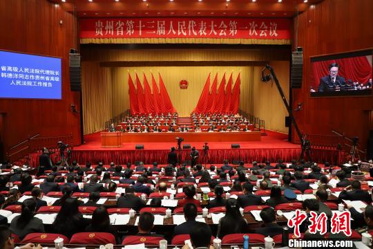 1月28日,貴州省十三屆人大一次會議舉行第二次全體會議。圖為貴州省高級人民法院代理院長韓德洋作貴州省高級人民法院工作報告。 瞿宏倫 攝