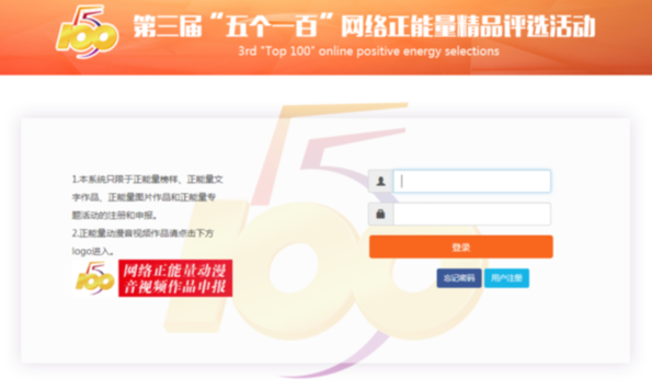 第三屆“五個(gè)一百”網(wǎng)絡(luò)正能量精品評(píng)選活動(dòng)申報(bào)頁面