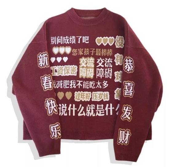 毫無疑問,這件衛衣是過年穿給親戚看的,七大姑八大姨關心的所有問題,標準答案都在身上呢!望周知,請勿繼續騷擾。