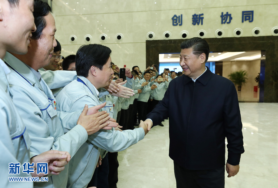 這是2月11日下午,習近平在成都中電熊貓顯示科技有限公司考察時同員工親切握手。 新華社記者 鞠鵬 攝