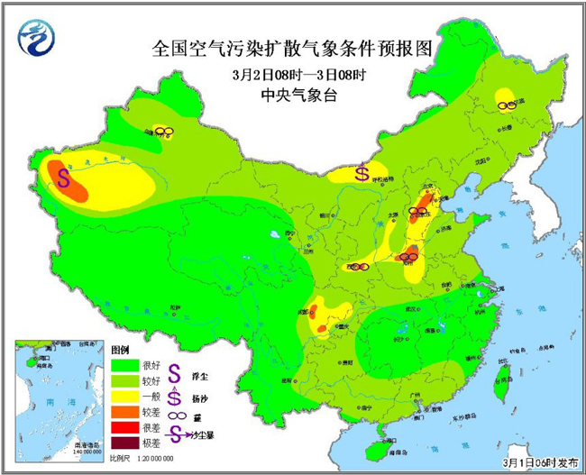 3月1日至7日,南方地區(qū)還將持續(xù)多陰雨天氣,強(qiáng)度多以小到中雨為主,其中3日至4日,江南、華南北部部分地區(qū)有大雨、局地有暴雨,并可能伴有強(qiáng)對流天氣。南方陰雨間歇期,還可能出現(xiàn)大霧天氣,這些地區(qū)的公眾出行時(shí)一方面要注意道路濕滑造成的不便,另一方面還要防范低能見度的影響。