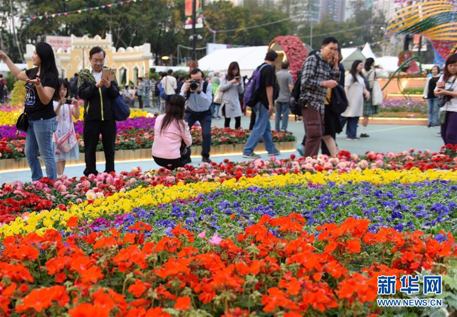 3月16日,市民在香港花卉展覽上參觀拍攝。當日,2018年香港花卉展覽在香港維多利亞公園揭幕,展出約40萬株花卉,吸引眾多市民和游客前往參觀。新華社記者 秦晴 攝