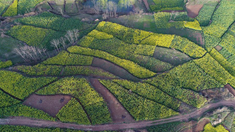 航拍江西袁河江畔新溪千畝油菜花海綻放