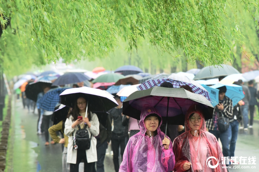 杭州:清明時節(jié)雨紛紛 西湖游客雨中游