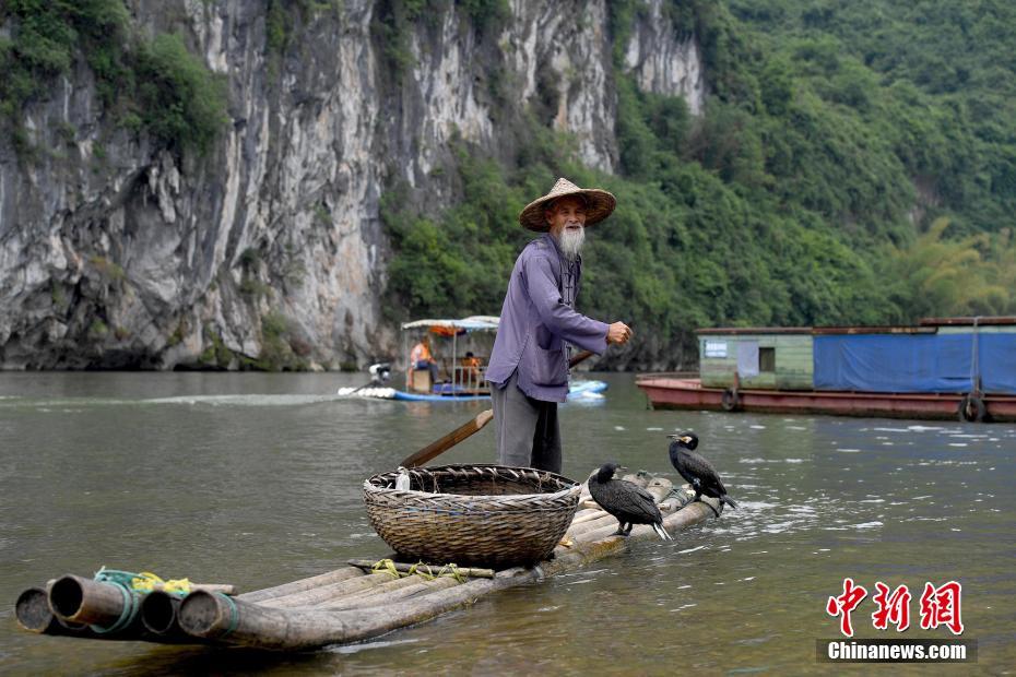 79歲的黃月創正在表演漓江傳統漁事。中新社記者 俞靖 攝