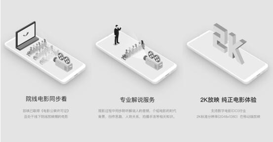 發布會上,產品開發方對“院線電影同步看”、“版權保護端到端”、“2K觀影”、“解說服務”和即將發布的“HD版本”、“零點場”等功能進行了詳細的介紹與展示。這標志著,公映期影片線上、線下同步放映的時代或將開啟。