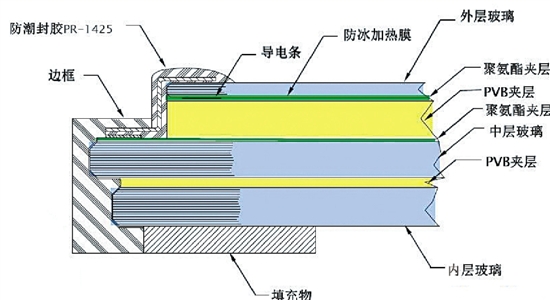 A320系列的風擋由多層不同的材料組成,最外層的是熱鋼化玻璃,位于中層和內層的是化學強化玻璃,各層玻璃之間通過聚胺酯層和PVB層粘接在一起。