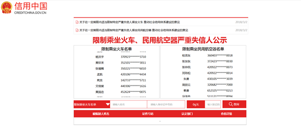 【信用中國】全國首批限制乘坐火車飛機“黑名單”出爐