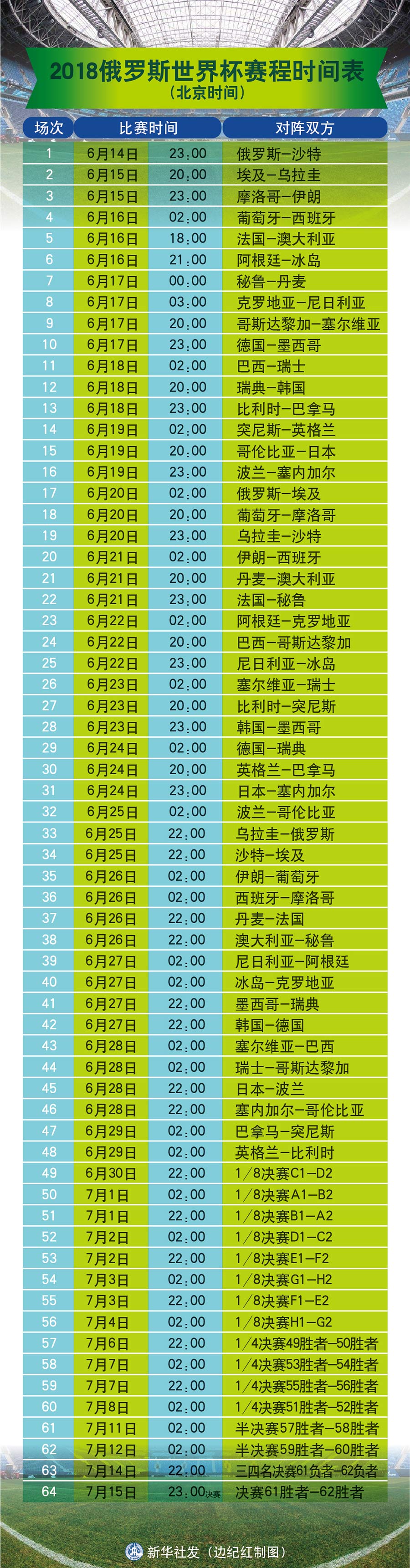 男:共有32支參賽隊(duì)伍,每隊(duì)23名球員。一共有64場比賽,打完小組賽,打淘汰賽,包括兩隊(duì)PK,八分之一決賽、四分之一決賽、半決賽、三四名決賽和決賽。