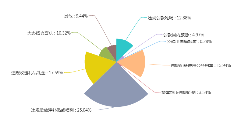 在違反中央八項規定精神問題的類型上,違規發放津補貼或福利、違規配備使用公務用車、大辦婚喪喜慶、違規收送禮品禮金等問題依然多發,這四類“老問題”占比超過70%,“吃喝玩樂”慣性仍然很強。