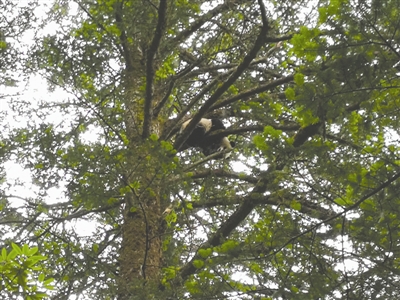 四川臥龍科考隊員巧遇頑皮野生大熊貓寶寶