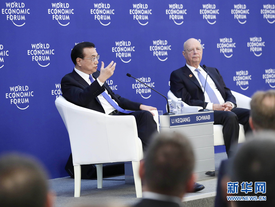 李克強就中國金融開放、知識產權保護、減稅降費、創新創業、世界貿易體制改革等問題回答了提問。世界經濟論壇主席施瓦布主持對話會。來自中國、美國、歐洲、日本等國和地區200余名代表出席。