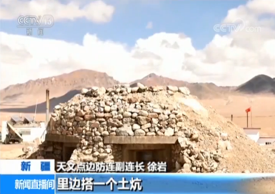 天文點邊防連副連長 徐巖:2012年之前,守防官兵一直都是在上面住的地窩子,就是挖了個半地下的,然后旁邊拿石頭壘起來,頂上蓋一層鐵皮,里邊搭一個土炕,以前就住在那種環(huán)境,現(xiàn)在修這么個哨樓還是好多了。