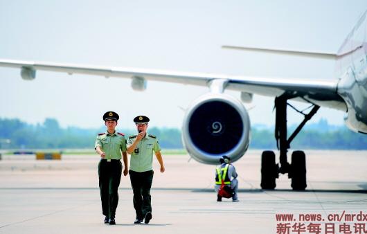 2018年8月7日,在南京祿口國際機場,王志國跑步前往驗證臺。