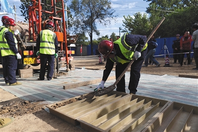 昨日(10日),故宮北院區(qū)施工現(xiàn)場,工程人員勘探取巖芯。新京報(bào)記者 浦峰 攝