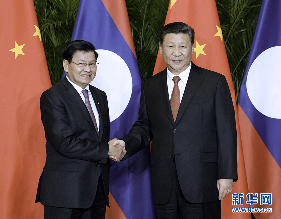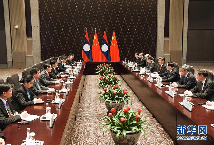 11月4日,國家主席習(xí)近平在上海會(huì)見老撾總理通倫。 新華社記者 丁海濤 攝