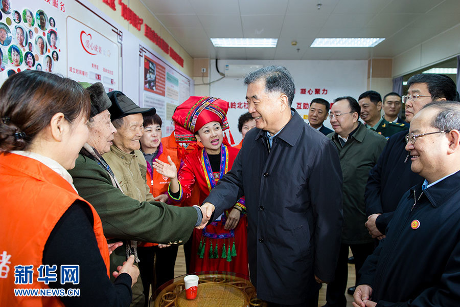 隨后,汪洋等前往鳳嶺北社區(qū)考察。在便民服務大廳、互助養(yǎng)老志愿服務站、“民族之家”活動室,汪洋與工作人員、志愿者和社區(qū)居民交流,了解社區(qū)加強基層黨建工作、開展便民服務情況。他指出,社區(qū)是黨和政府聯(lián)系、服務居民群眾的“最后一公里”,要健全社區(qū)管理和服務體制,整合各種資源,增強社區(qū)公共服務能力,讓大家有更多的獲得感、幸福感。