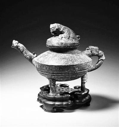 這件青銅“虎鎣”為西周晚期文物,頂蓋內(nèi)鑄有“自作供鎣”銘文,因其精美獨(dú)特的造型、罕見的虎形裝飾而具有重要的歷史、藝術(shù)和文化價(jià)值。相關(guān)資料顯示,青銅“虎鎣”原為清宮皇室舊藏,1860年被英國(guó)軍官哈利·埃文斯從圓明園劫掠獲得,此后一直由其家族收藏。
