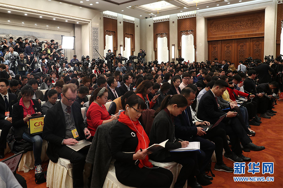 3月4日,十三屆全國人大一次會議在人民大會堂新聞發布廳舉行新聞發布會,由大會發言人就大會議程和人大工作相關的問題回答中外記者的提問。圖為新聞發布會現場記者。新華網/中國政府網 翟子赫 攝
