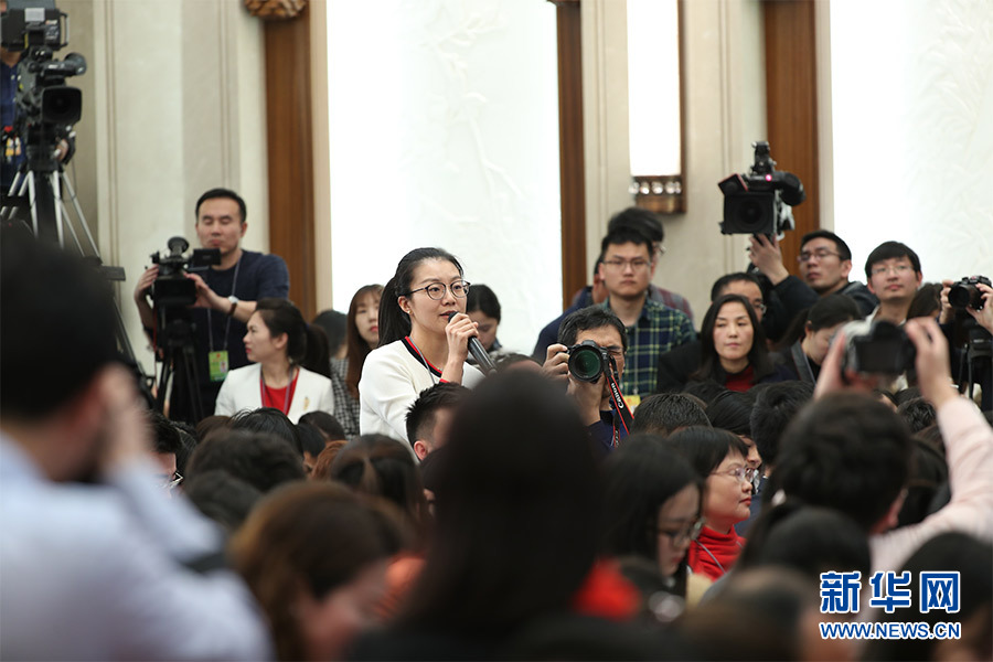 3月4日,十三屆全國人大一次會議在人民大會堂新聞發布廳舉行新聞發布會,由大會發言人張業遂就大會議程和人大工作相關的問題回答中外記者的提問。圖為中國日報記者提問。新華網/中國政府網 翟子赫 攝