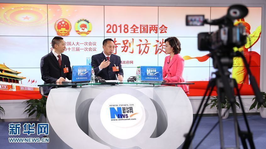 3月5日,全國人大代表、東風商用車有限公司總裝配廠調檢一車間“王濤班”班長王建清(中)做客新華網2018全國兩會特別訪談。新華網 張斌/攝