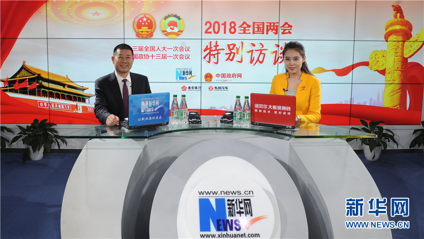 3月9日,全國(guó)人大代表、飛鶴乳業(yè)董事長(zhǎng)冷友斌(左)做客新華網(wǎng)2018全國(guó)兩會(huì)特別訪談。新華網(wǎng) 郭小天攝