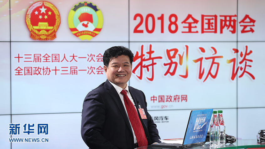 3月13日,全國(guó)人大代表、山東省淄博市原山林場(chǎng)黨組書(shū)記孫建博做客新華網(wǎng)2018全國(guó)兩會(huì)特別訪(fǎng)談。新華網(wǎng) 郭小天攝