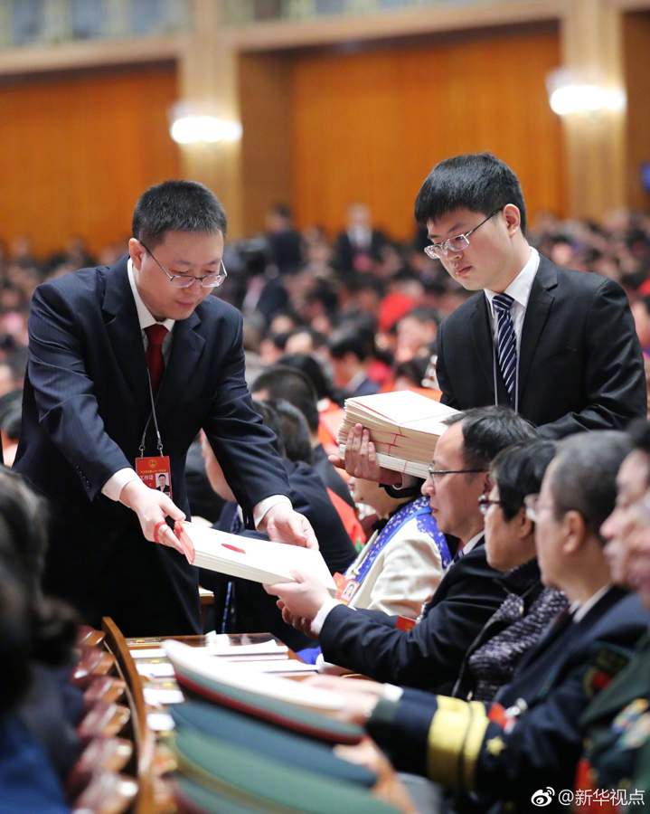 新華網北京3月17日電 3月17日,十三屆全國人大一次會議在北京人民大會堂舉行第五次全體會議,選舉新一屆國家領導人。這是工作人員發放選票。(據新華社“新華視點”微博報道 攝影:劉衛兵) ?????