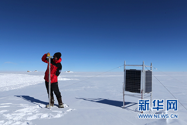 南極內陸冰蓋冰流運動監測,是南極內陸考察的重要觀測項目,也是一個長期連續觀測項目??瓶缄爢T、武漢大學中國南極測繪研究中心副教授楊元德當天利用GPS測量了冰流速。