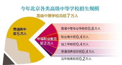 昨天,北京市教委發(fā)布《北京市教育委員會(huì)關(guān)于做好2019年高級(jí)中等學(xué)校考試招生工作的意見(jiàn)》(以下簡(jiǎn)稱“意見(jiàn)”)。北京青年報(bào)記者注意到,根據(jù)意見(jiàn),今年本市各類高級(jí)中等學(xué)校招生規(guī)模為7萬(wàn)人,其中普通高中招5萬(wàn)人,中等職業(yè)教育招2萬(wàn)人。同時(shí),確定中考文化課考試時(shí)間為2019年6月24日至26日。