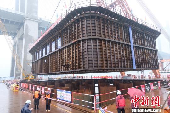 泉州灣跨海大橋主墩承臺長40.5米、寬26.5米、高6米。為實現主墩安全、高效施工,承臺施工的擋水、擋浪、模板結構物采用單壁鋼吊箱結構,它的作用是通過四面壁板和后期澆筑的封底混凝土形成圍堰,為承臺施工提供干作業環境。“就像在海中放置一個巨型‘箱子’,將‘箱子’底部和海中樁基相連并固定,然后向底部澆筑混凝土,并抽干里面的海水,這樣就可以在海中形成一個小型‘人工島’,使海洋施工環境變為陸地環境,方便承臺施工?!表椖靠偣堁雍咏忉尩?。