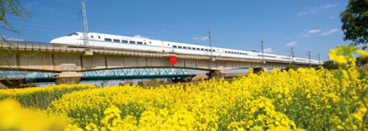 3月22日,一列高鐵列車駛過江蘇南通海安市的油菜花田 徐勁柏?cái)z