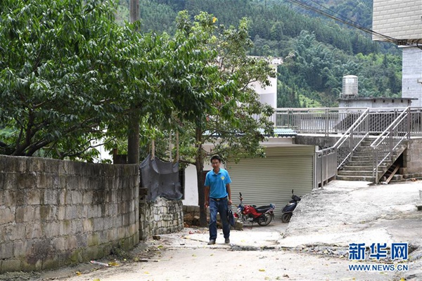 楊杰興在廣西樂(lè)業(yè)縣百坭村走訪(fǎng)(8月1日攝)。新華社記者 周華 攝