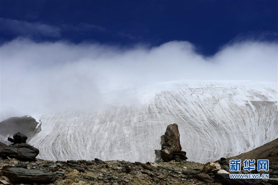 這是在青海省海西蒙古族藏族自治州格爾木市境內拍攝的昆侖山玉珠峰冰川一角(2017年8月19日攝)。新華社記者 張宏祥 攝