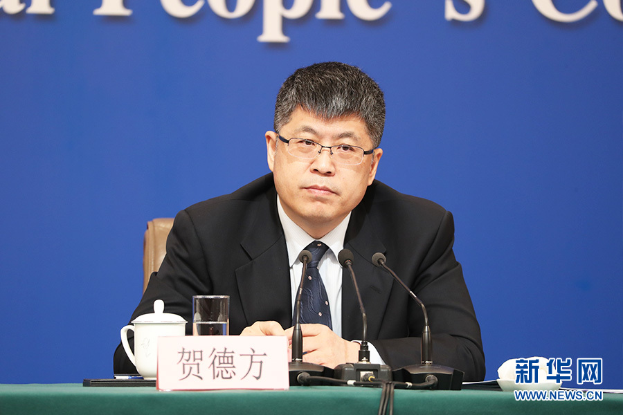 十三屆全國人大二次會議新聞中心3月11日(星期一)8時45分在梅地亞中心新聞發布廳舉行記者會,邀請科技部部長王志剛、副部長李萌、戰略規劃司司長許倞、政策法規與創新體系建設司司長賀德方、資源配置與管理司司長張曉原就“加快建設創新型國家”相關問題回答中外記者提問。圖為政策法規與創新體系建設司司長賀德方。新華網/中國政府網 陳杰 攝