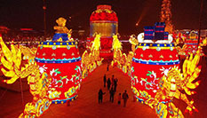 燈會(huì)的不少花燈還融入了綠色范、環(huán)保風(fēng)。超過(guò)12萬(wàn)只玻璃瓶經(jīng)“廢物利用”后,注入各種顏色的食用色素水,組裝成一只大“鼎”,兩龍環(huán)繞,牡丹點(diǎn)綴,顯得威武雄壯又瑰麗多彩。這組用玻璃瓶打造的彩燈“鼎盛中華”一經(jīng)亮相便吸引了眾多游客駐足贊嘆。“用玻璃、瓷器做燈的方法常見(jiàn),但體量一般較小。透亮的玻璃打上燈光,會(huì)實(shí)現(xiàn)其他材料沒(méi)有的通透和絢麗效果。”蘇杰說(shuō)。