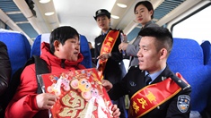 列車上,四川省總工會(huì)為老鄉(xiāng)們發(fā)放了溫暖大禮包,里面有零食、圍巾、對聯(lián)等,確保老鄉(xiāng)們在漫漫歸鄉(xiāng)途中有暖有食。旅途中,志愿者們進(jìn)行了文藝表演,并向農(nóng)民工發(fā)放創(chuàng)業(yè)就業(yè)、金融等宣傳資料。