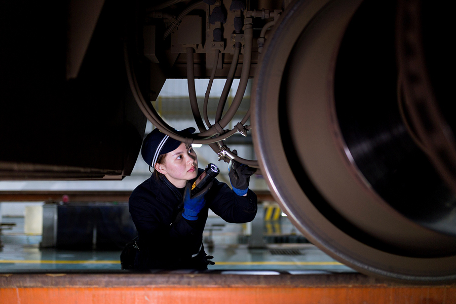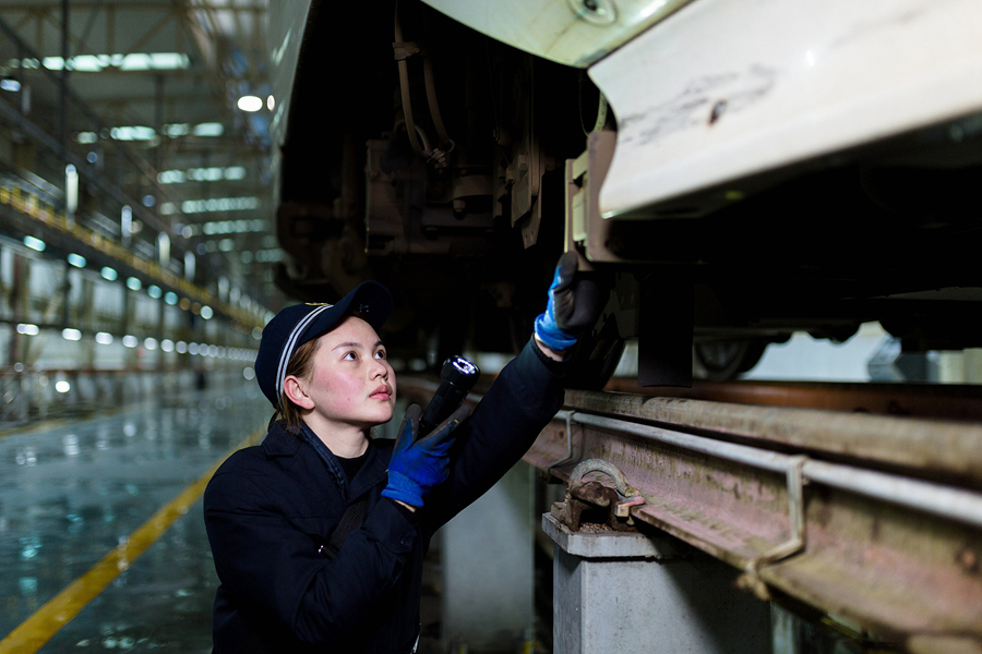 “我們這個崗位最重要的是細(xì)心,車底螺絲是否移位、電纜接頭是否松動,不敢放過一個細(xì)節(jié),比如說動車底盤的天線,遇到北方冰凍雨雪天氣時,易被冰塊砸出裂紋,如沒及時發(fā)現(xiàn),將會對列車信息傳輸造成直接影響。”向念說。