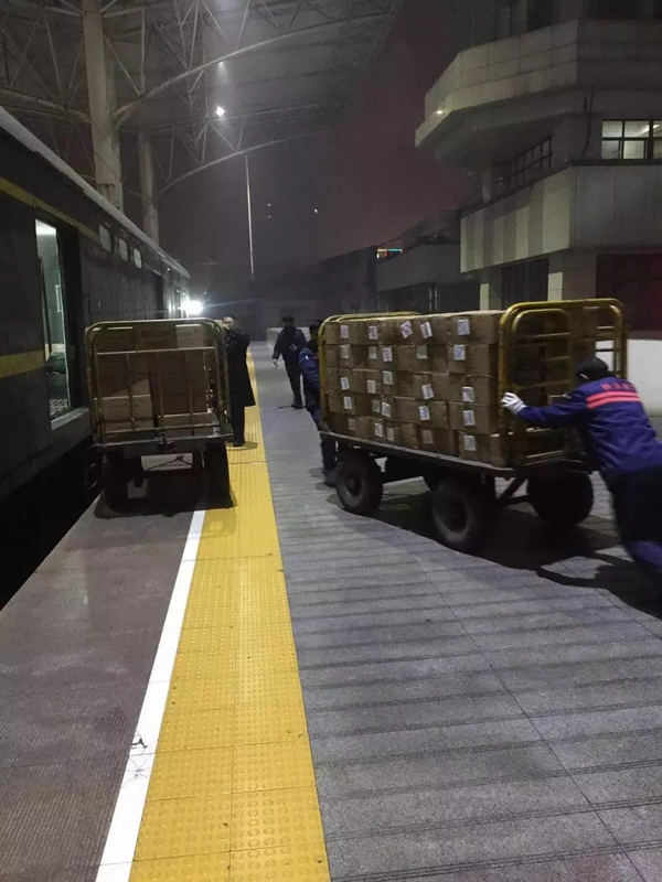 1月24日,杭州支援武漢的12箱測溫儀快件,緊急送至杭州客運段值乘的G594次列車,妥善放置5號車廂,8時16分由杭州東駛向武漢。