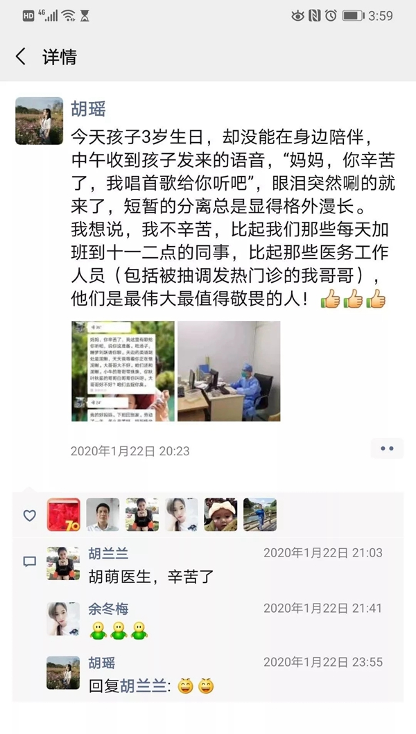 而此時,胡瑤和哥哥一樣,也在與新型冠狀肺炎抗擊奮戰的第一線。