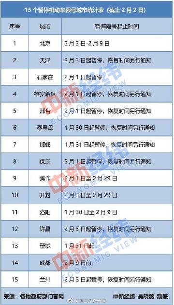 對部分上班族來說,3日是正式復工的第一天。為了減少人員聚集和交叉感染,阻斷疫情傳播,近日北京、天津、石家莊、雄安新區、邢臺、秦皇島、邯鄲、保定、焦作、開封、洛陽、許昌、晉城、成都、蘭州共15城發布了暫停機動車尾號限行的措施,減少民眾公共交通出行。