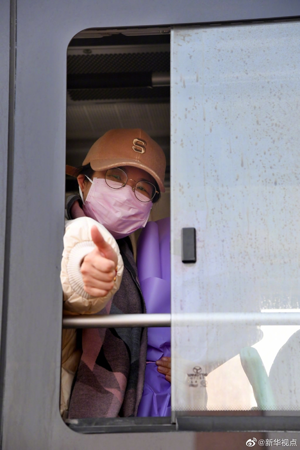 “首批確診患者順利出院,對我們醫(yī)院全體醫(yī)務(wù)人員是一個鼓舞。下一步,我們將繼續(xù)總結(jié)探索更為行之有效的診治方法和措施,讓更多的患者痊愈?!被鹕裆结t(yī)院政委原華說。( 記者賈啟龍、黎云、張書旗 攝影:王傳順)