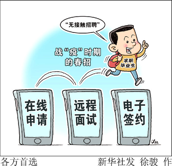 受疫情影響,高校畢業(yè)生求職面臨很多不便。對此,人社部就業(yè)促進司副司長宋鑫表示,人社部正會同有關方面加大線上崗位投送力度,拓展畢業(yè)生擇業(yè)渠道,引導用人單位延長招聘時間,千方百計助力畢業(yè)生平安順利就業(yè)。公共就業(yè)人才服務機構(gòu)將延長報到接收時間,盡最大努力為高校畢業(yè)生辦理就業(yè)協(xié)議簽訂和報到手續(xù)等提供便利。