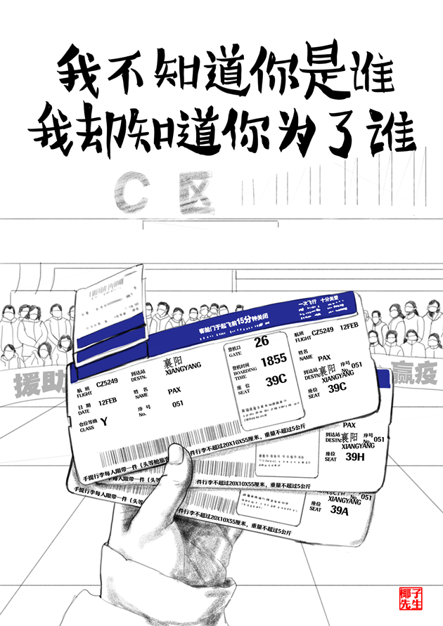 “我不知道你是誰,我卻知道你為了誰?!彼麄兏鎰e家人、告別家鄉,默默出征,和湖北的兄弟姐妹們一起,去打這場沒有硝煙的戰爭。他們是白衣天使,是白衣戰士。我們不能叫出他們每一個人的名字,但他們有一個共同的名字:英雄?。ㄎ模簭堎?手繪:趙凱)