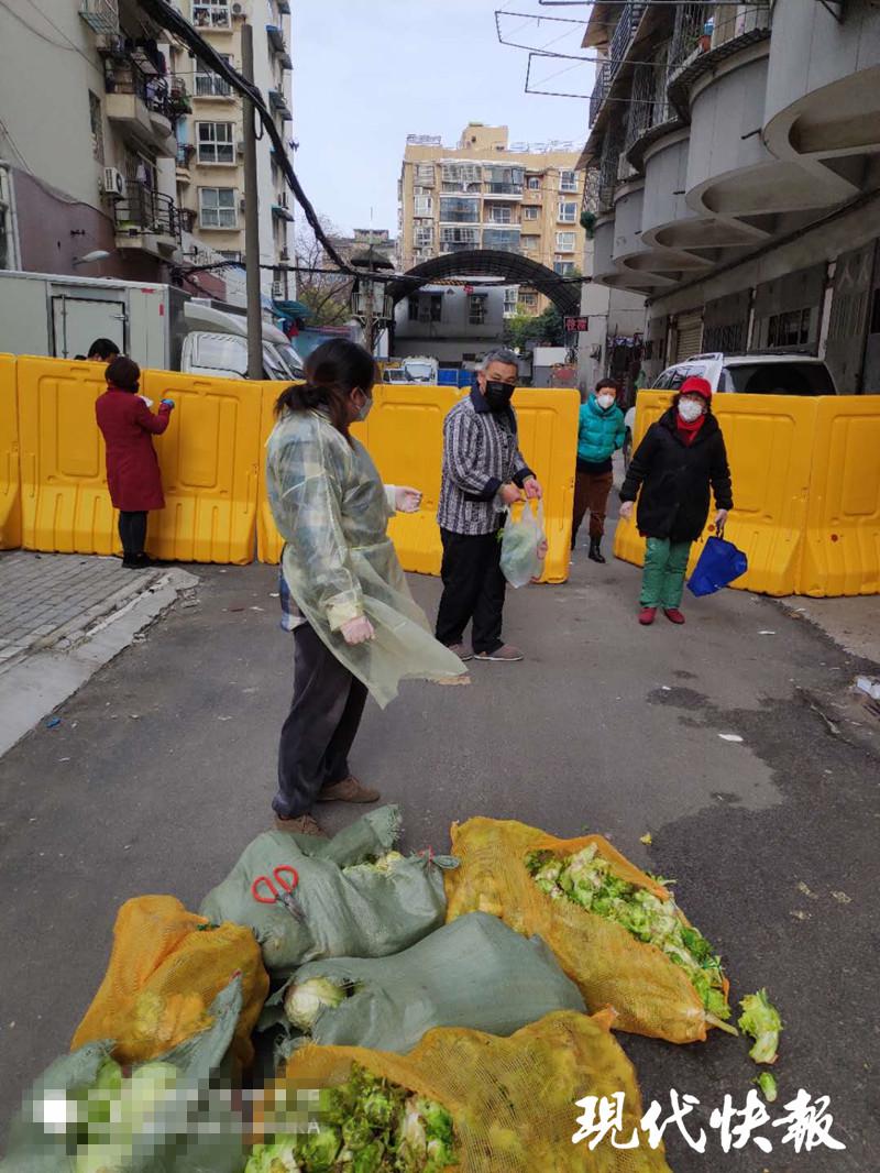另外,了解到社區內有 500 戶特困人員,包括生病的患者、隔離人員、老人和一些困難戶。我和同事們上門送藥、送糧油、送菜、送關愛。每天,我和同事們平均要給一百多戶居民送菜、送藥,保障居民的日常生活物資。