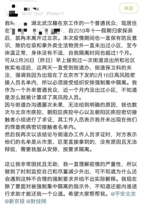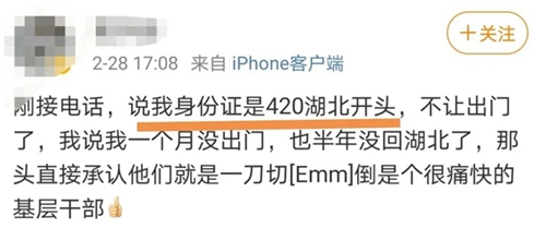 無論是網絡曝光的案例,還是記者身邊人親歷的尷尬,都有一個共同點,即以身份證作為是否隔離、勸返的依據(jù)。而一些地方所謂的“大數(shù)據(jù)報告”,聽上去僅是查到了轄區(qū)內哪些人身份證是以“42”開頭,而不是這個人近期到底去沒去過湖北。這也難怪有人調侃:“最新研究表明,新冠病毒能通過身份證號傳染?”